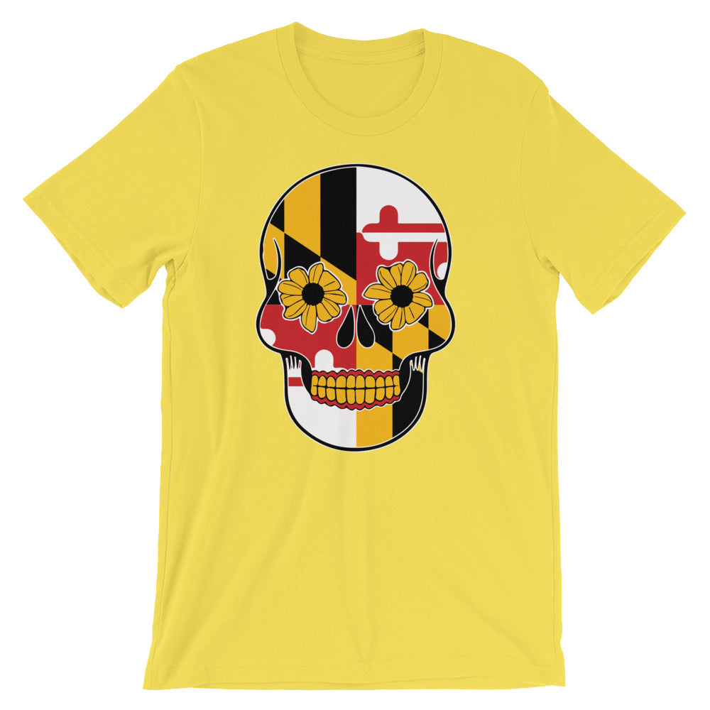 MD Flag Sugar Skull Short-Sleeve Unisex T-Shirt (More Colors Available) - MarylandFlagTheWorld
